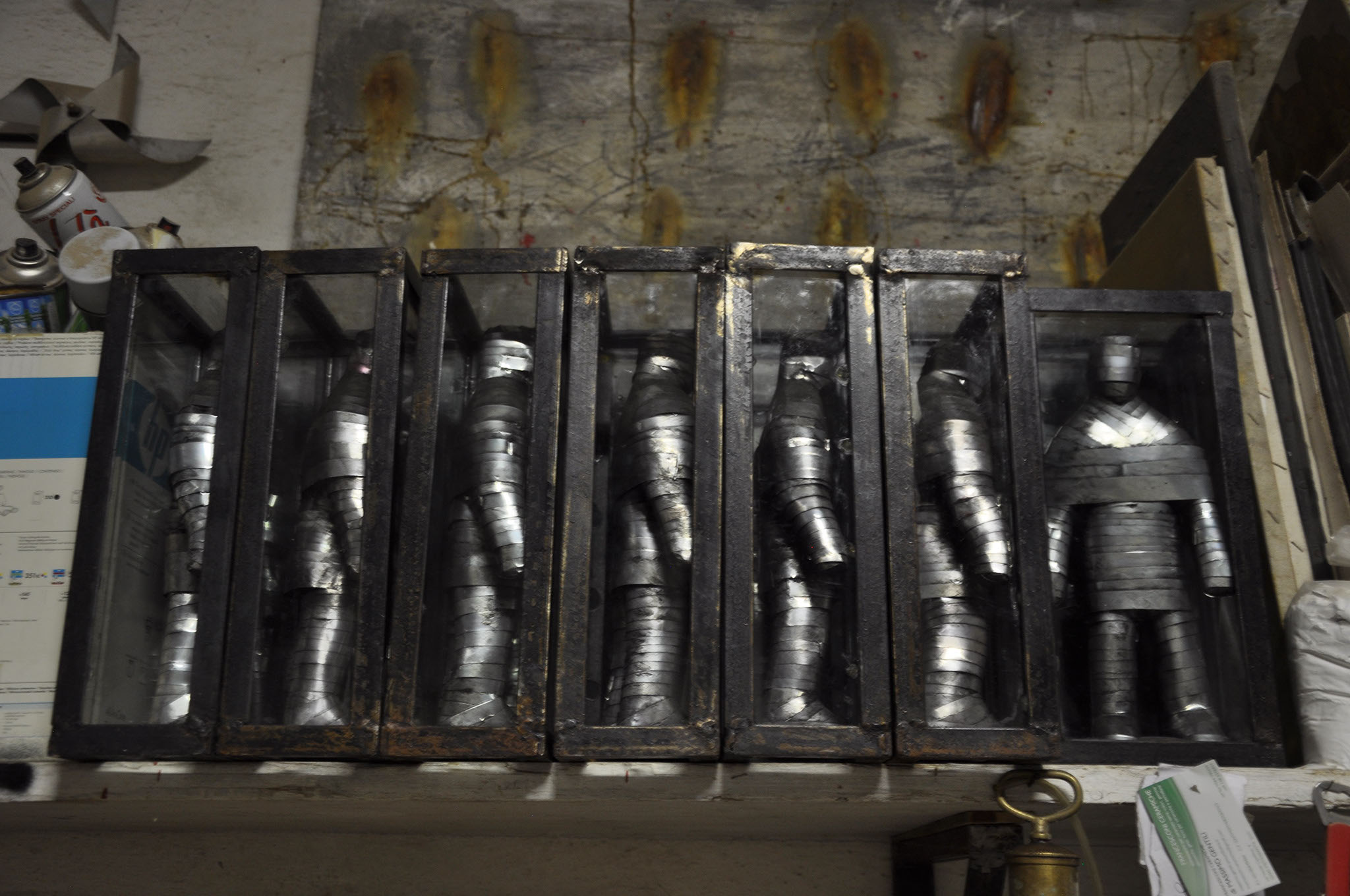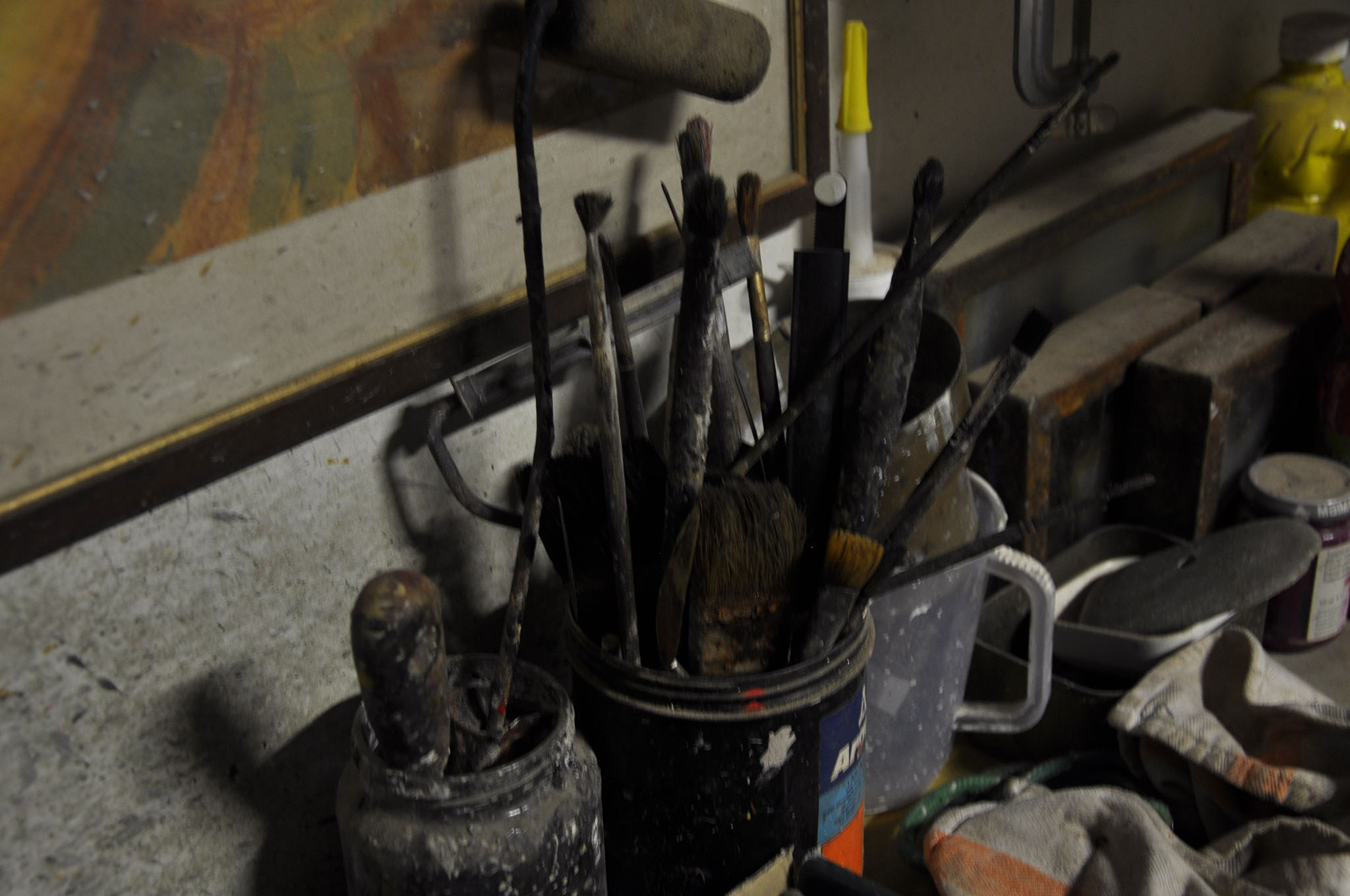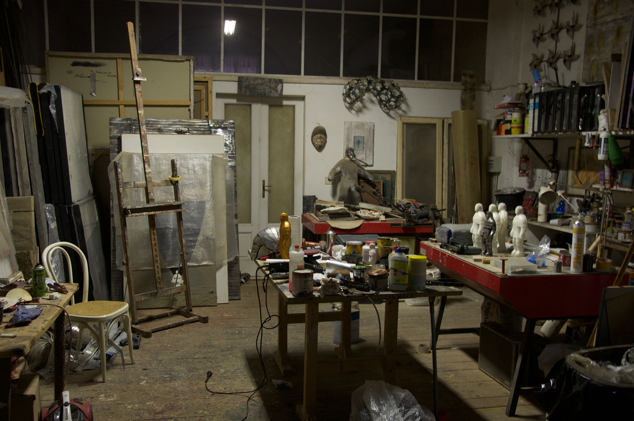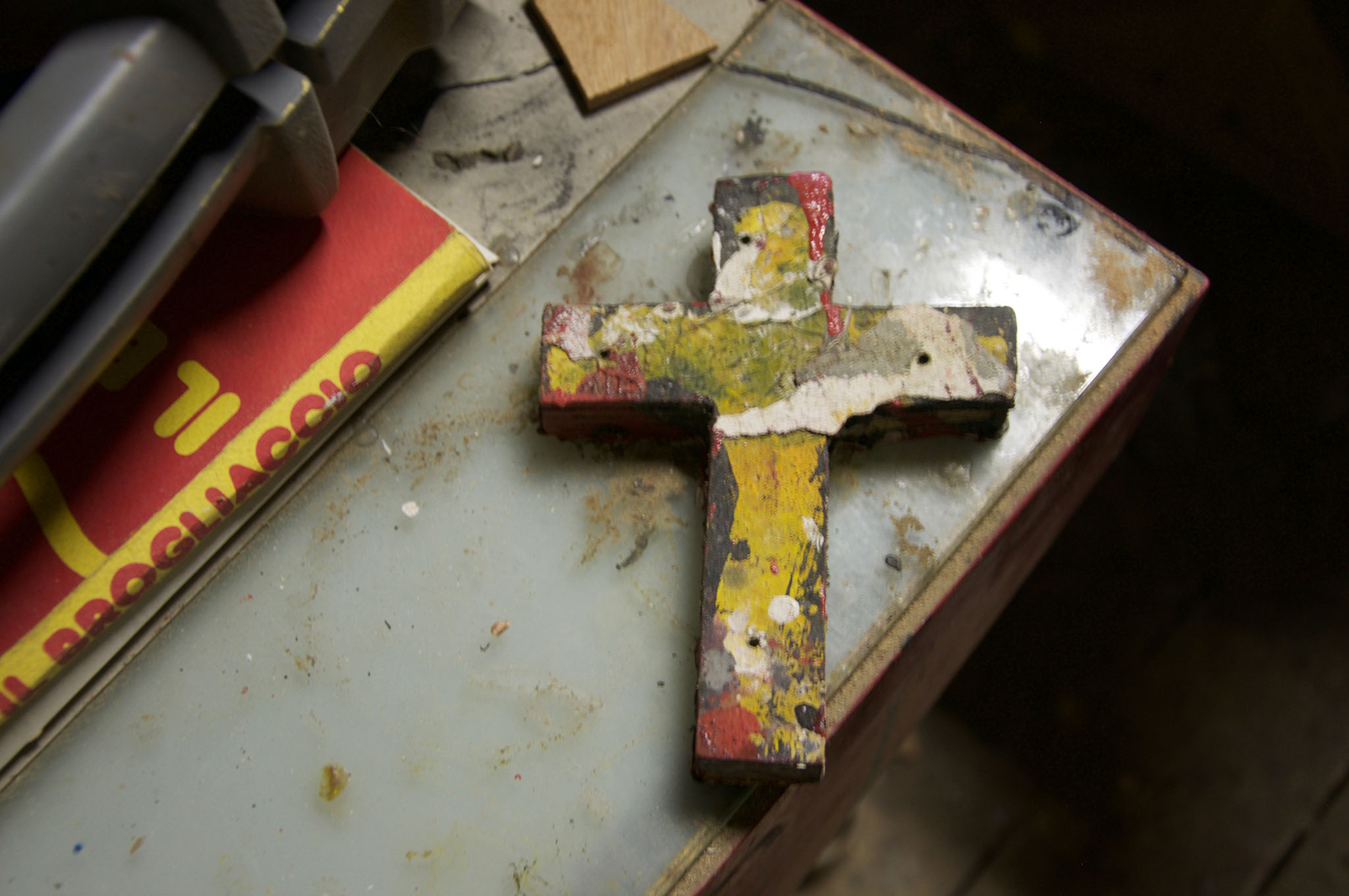 Italian artist Paolo Fiorellini was born in 1961 in Sarzana, near La Spezia, where he presently lives and works. In 1985 he attended the Academy of Fine Arts in Carrara. Much of his early work could be described as falling between figurative and expressionism. In the 1990ʼs he began to dedicate himself to experimenting with materials and his paintings became less formal and rich in materials such as silicon, flowers, grass and fish. Fiorellini is drawn to the examination of the pigments and surfaces of substances preferring colors that absorb or radiant energy. His explorations consists of creating disorientation using icons and archetypes to express concepts and morals. Technically versatile, he works with paint, sculpture, assemblage and performance. His work can be characterized within the realmss of trans-avantgarde and modern object study.